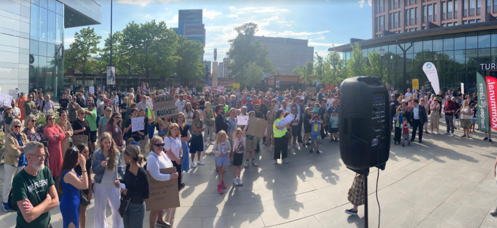 Glädjande att lokaltidningen Mitt i Sollentuna skrev en artikel om demonstrationen innan den gick av stapeln, och denna relaterade artikel om ett politiskt förslag från oppositionspartier om att skjuta till 40 miljoner kronor till skolbudgeten (det röstades ner av politiska majoriteten).